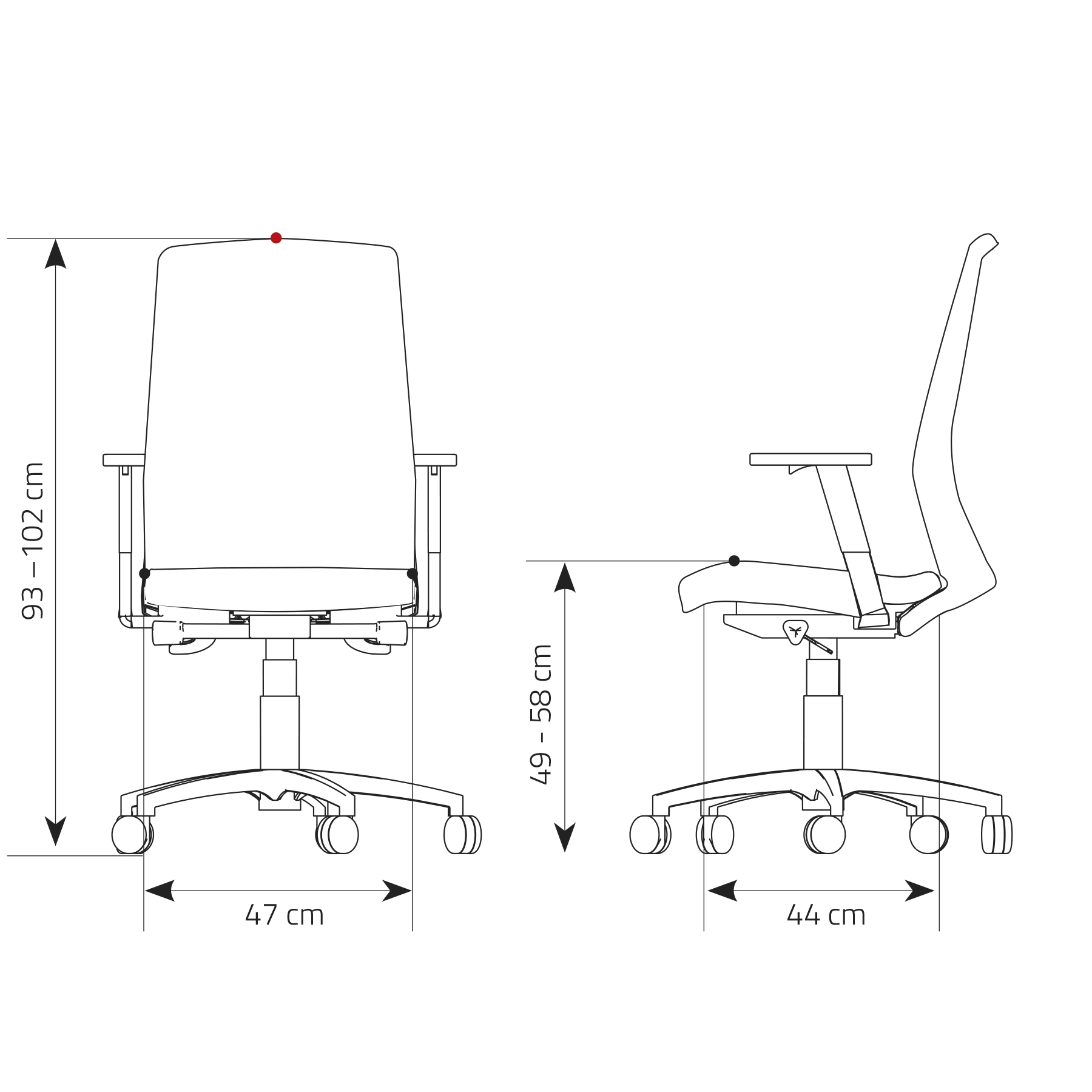 - ergonomsko oblikovan naslon, tapeciran v črno mrežo